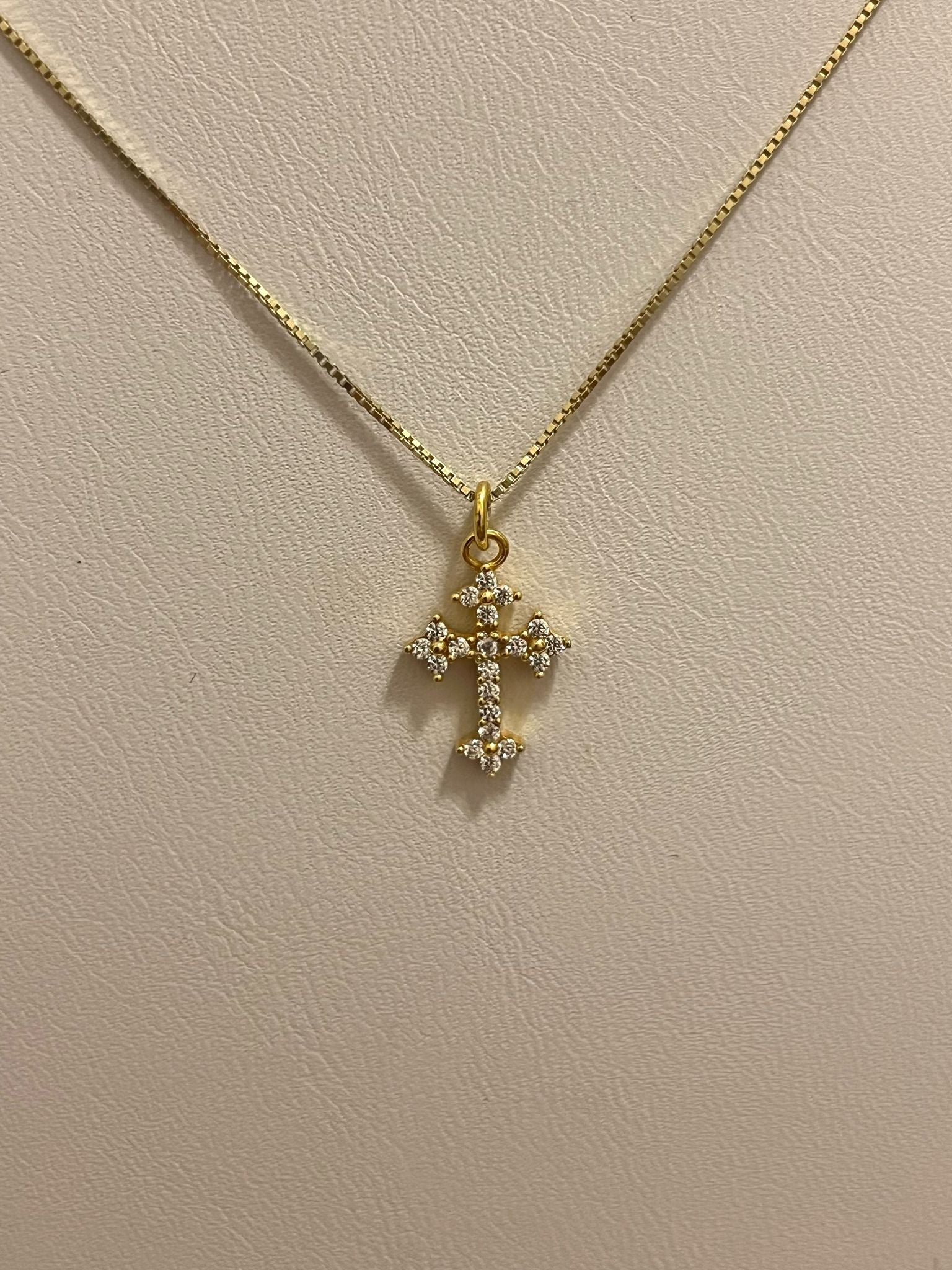 Collana con ciondolo (croce)argento placcato oro 18kt e zirconi