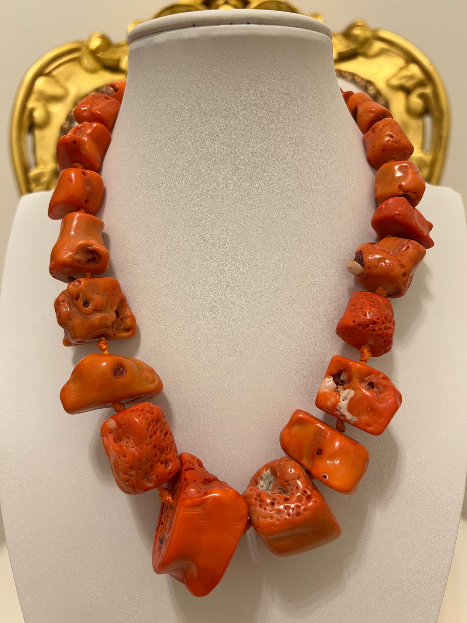 Collana in corallo vegetale naturale con chiusura sferica in argento 925 con bagno d’oro 18kt