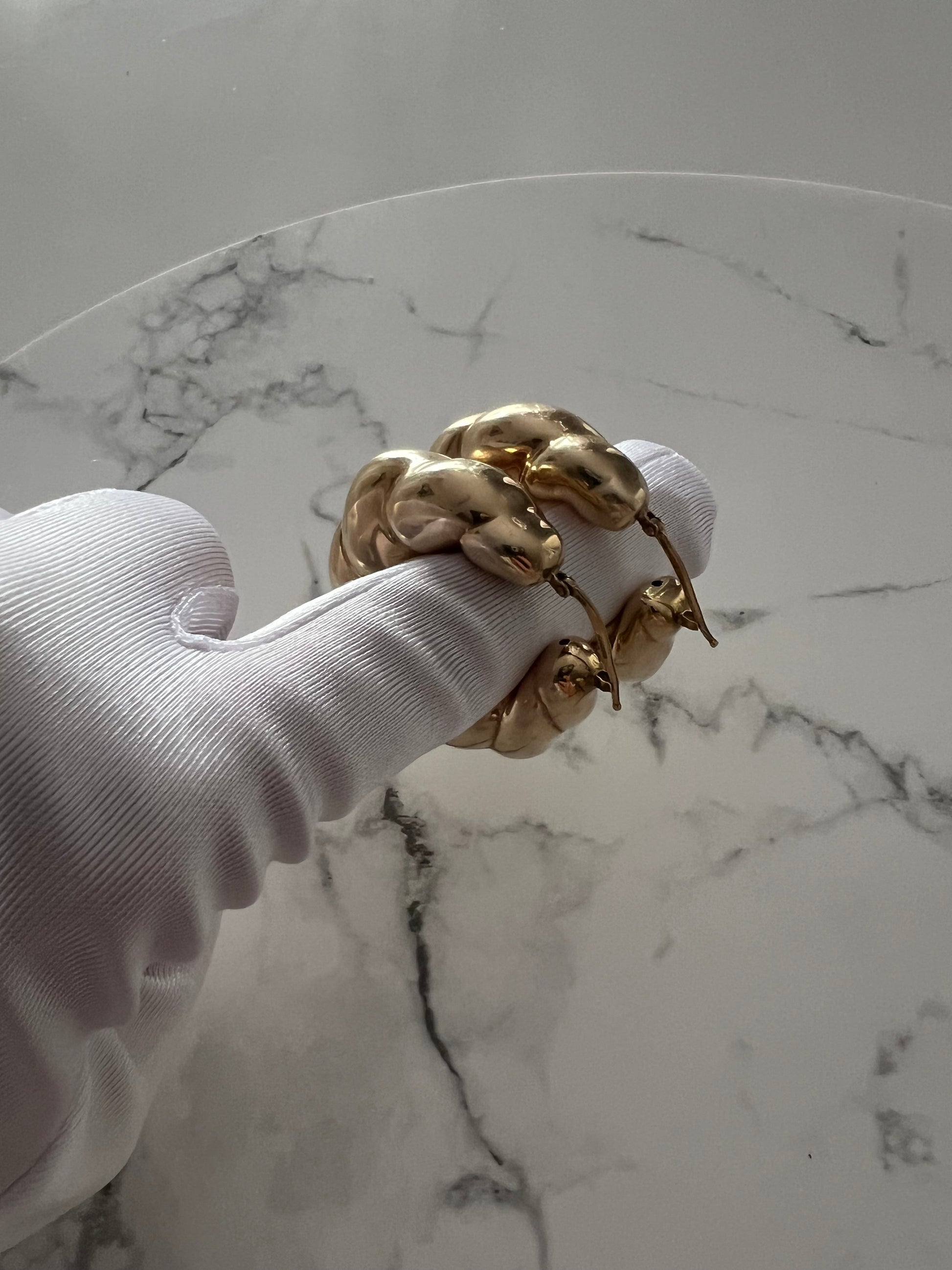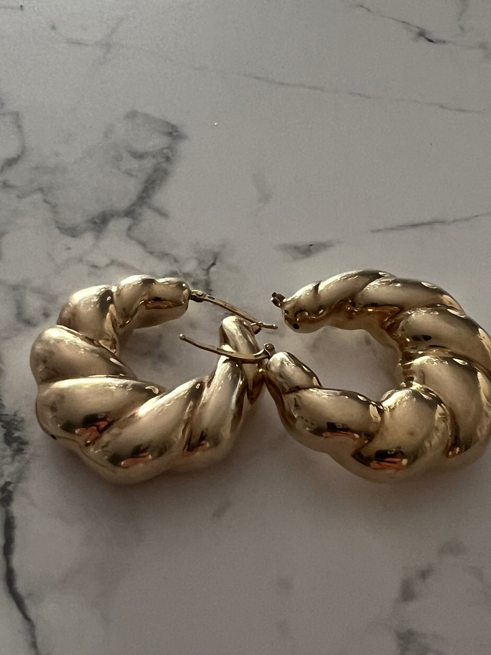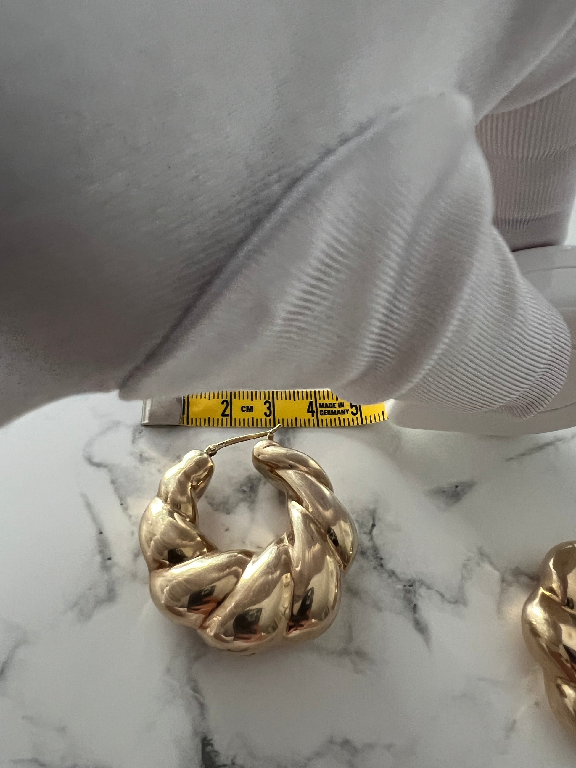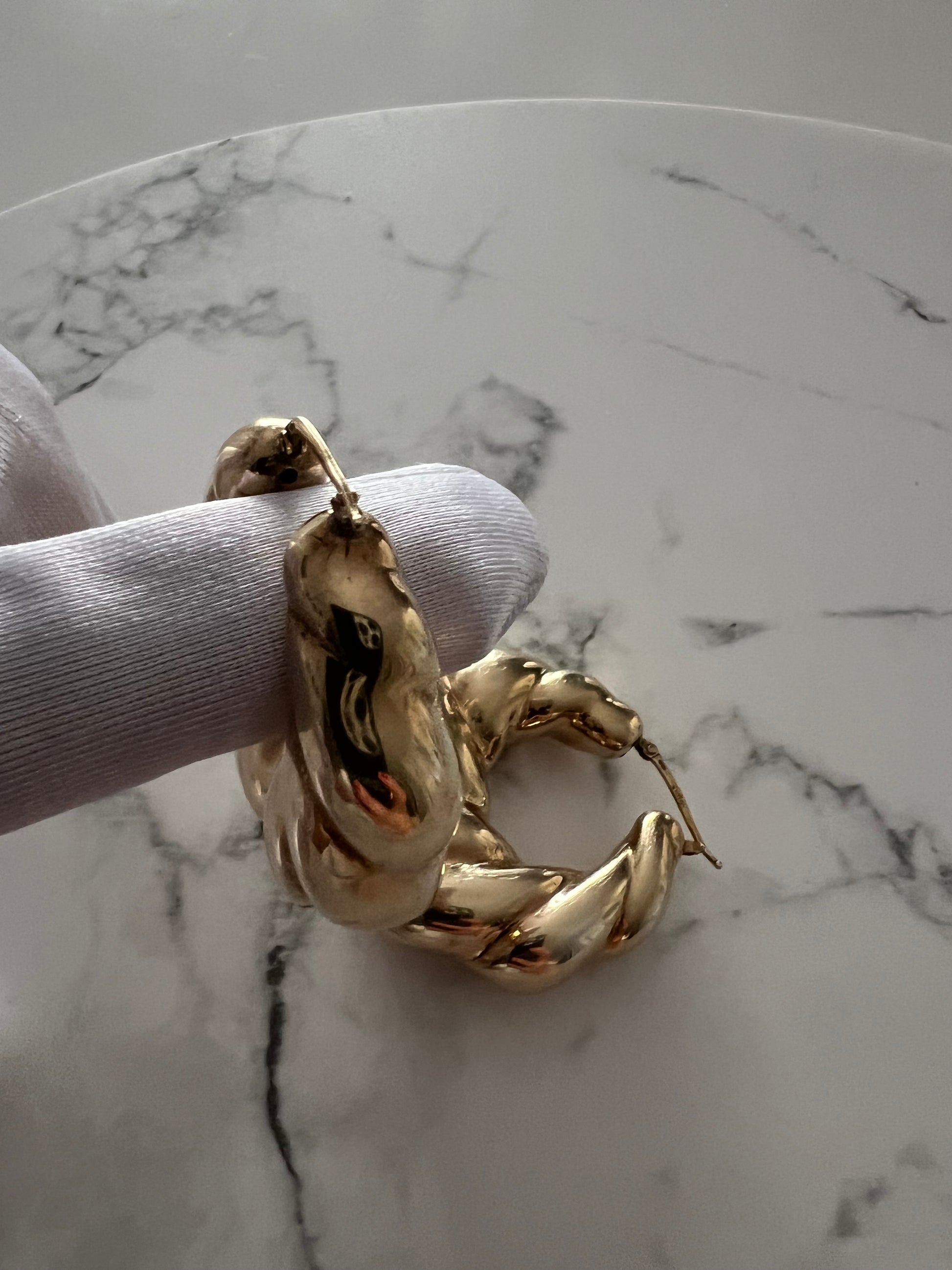 Orecchini a cerchio lavorati argento 925 placcatura oro 18 KT . Chiusura a scatto , Misura (media)